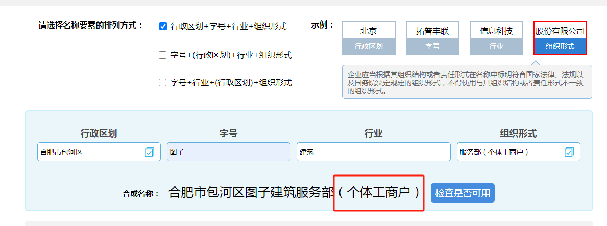 想在合肥注册个体户的老板注意了:近期在合肥注册个体户尾部都添加上了固定字符[个体工商户] 这个是不可更改的去掉的,有些老板的经营业务如果不想出现个体工商户的字样,那就只能注册有限公司了。